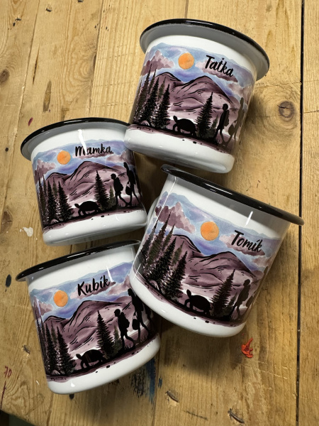 - Keramika, kov, sklo: Porcelánové hrnky, plecháčky, termohrnečky, které zpříjemní váš den a lahve, termosky na vaše cesty do práce i za klidem.