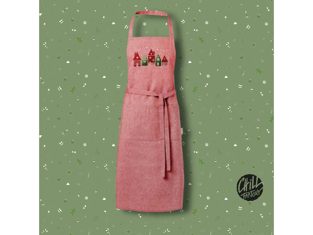 Kuchyňská zástěra vyrobená ze směsi recyklované bavlny a recyklovaného polyesteru. Zástěra má dvě kapsy a metrový pásek na zavazování. Recyklovaná bavlna se získává z výrobního odpadu. Vzhledem k tomu může docházet k odchylkám v barevnosti u jednotlivých produktů. Délka pásku kolem krku je 55 cm.